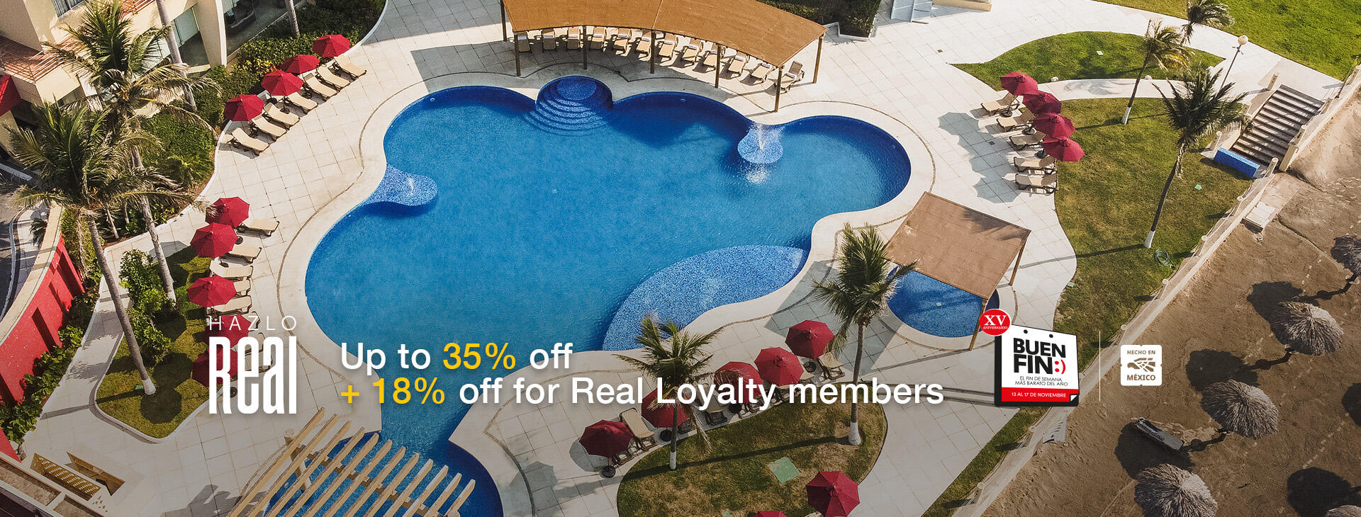 Promotion valid for Real Inn Mexicali for bookings made from November 13th to 17th, 2025, for travel from November 13th to December 31st, 2025. Promotion valid for Real Inn Nuevo Laredo, Real Inn San Luis Potosí, and Real Inn Torreón for bookings made from November 13th to 17th, 2025, for travel from November 13th, 2025, to April 30th, 2026.Quinta Real hotels Up to 35% off: Quinta Real Aguascalientes, Quinta Real Guadalajara, Quinta Real Huatulco, Quinta Real Monterrey, Quinta Real Oaxaca, Quinta Real Puebla, Quinta Real Saltillo, and Quinta Real Zacatecas.Camino Real hotels Up to 35% off: Camino Real Acapulco Diamante, Camino Real Aeropuerto, Camino Real Fashion Drive Monterrey, Camino Real Guadalajara, Camino Real Mérida, Camino Real Monterrey, Camino Real Pachuca, Camino Real Polanco, Camino Real Pedregal, Camino Real Puebla Angelópolis, Camino Real Santa Fe, Camino Real Veracruz, and Camino Real Zaashila Huatulco.Real Inn hotels Up to 25% off: Real Inn Mexicali, Real Inn Nuevo Laredo, Real Inn Perinorte, Real Inn San Luis Potosí, Real Inn Tijuana, and Real Inn Torreón.Promotion not valid for Quinta Real Acapulco Hotel.The discount is applied to the public rate "Buen Fin" Non-refundable rate. European plan (no meals included). Extra person subject to an additional charge. Cannot be combined with other promotions and/or discounts. This promotion does not apply to reservations of more than 10 rooms.Reservations at 800 90 123 00, on caminoreal.com and our mobile application “Camino Real Hoteles”.Additional Benefit for Real Loyalty Members:By joining the Real Loyalty program, guests will receive an additional 18% discount on the “Buen Fin” public rate.Check hotels and available dates on caminoreal.comDates where the promotion does not applyQuinta Real Aguascalientes: November 13th to 18th, 2025; April 11th to 30th, 2026; May 1st to 17th, 2026. Quinta Real Guadalajara: November 21st to 23rd, 2025. Quinta Real Huatulco: November 28th to 29th, 2025; December 28th to 31st, 2025; January 1st to 3rd and 23rd to 25th, 2026; April 24th to 26th, 2026. Quinta Real Oaxaca: December 19th to 25th, 2025; January 23rd to 24th and 30th to 31st, 2026; February 27th to 28th, 2026; March 13th, 2026. Quinta Real Puebla: November 15th to 17th and 22nd, 2025; December 24th to 31st, 2025; January 24th, 2026.Camino Real Acapulco:November 19th to 21st, 2025; December 28th to 31st, 2025; January 1st, 2026; February 5th to 8th and 23rd to 28th, 2026. Camino Real Pachuca: November 14th to 16th, 2025. Camino Real Puebla Angelópolis: November 14th to 16th and 21st to 22nd, 2025; January 29th to 31st, 2026. Camino Real Veracruz: November 14th to 17th, 2025; December 29th to 31st, 2025; January 1st, 2026. Camino Real Zaashila Huatulco: December 24th to 31st, 2025; January 1st to 3rd, 2026.Real Inn Tijuana: November 13th to 17th, 2025.
